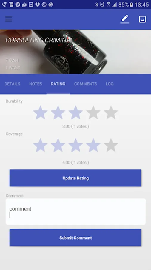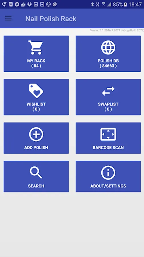 1. Free Version - This version is limited to 20 max polishes in your rack, is ad supported and does not permit you to add gallery items.