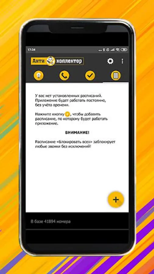 Unfortunately, the law is not always fulfilled. Collectors do not have the right to call you and annoy your family, if you have no credit, but they do it. This application is created with the aim of restoring justice. Our team will monitor, verify and update information on all rooms of collectors. Now, your peace of mind - our concern. We work for you and we will try to fulfill all your wishes. The application works on the principle of the black list and spam filter, but with a ready and automatically replenished twice a day blacklists.