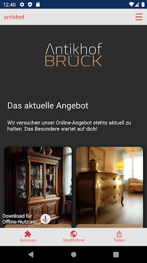 Look to us for that one piece that truly means something to you, that tells your story and underscores your personality. Once you find it, cherish it and pass it on to future generations. Because an original piece is more than just a piece of furniture or decoration - it is a valuable heritage that deserves to be preserved. Here at Antikhof Brück you will find the beauty of the past that lives on in the modern world.