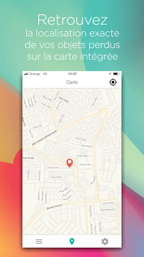 L'application enregistre le dernier emplacement quand le Lopo® est séparé du téléphone. Utilisez la carte intégrée pour retrouver vos objets perdus.