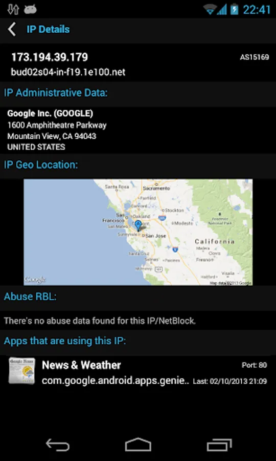 - Gets detailed info about each app that connects to remote servers and network connections used by it - permissions granted to each captured package and all IP addresses used by it.
