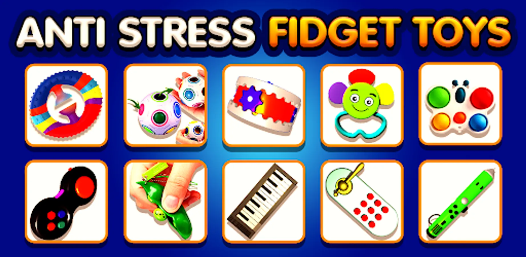 Anti Stress Fidget Toys Game is an epic free offline funny calming and relaxing anxiety relief game. It is one of the best stress relieving game with a lot of amazing fidget toys that you can hold, squeeze, squash or do whatever you want to do with them to release stress in minutes. Dozens of Fidgets, Calming Toys and Relaxing Sounds will make you love this game while you freshen up from boredom or hectic routine.
