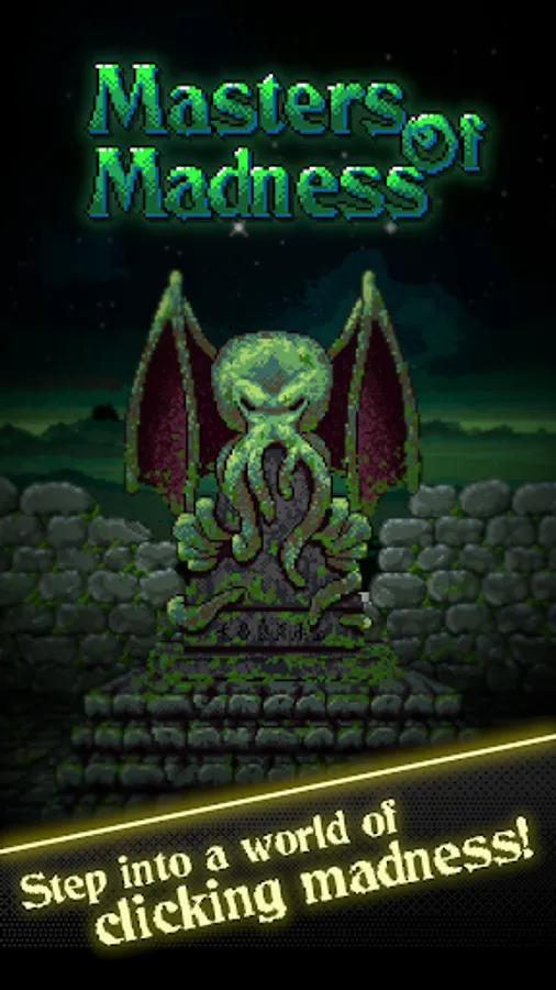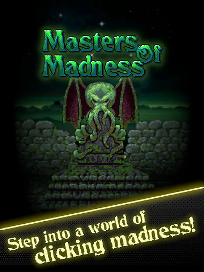 A pixel art idle clicker game with a dark, magical theme for fans of cosmic horror! Masters of Madness is a tapping game that will give you a wicked delight with every tap and achievement. Step into the spooky universe of H.P. Lovecraft and start tapping away!