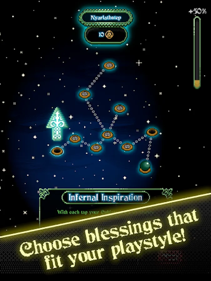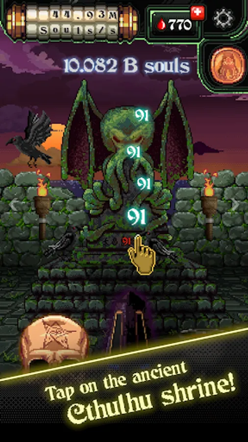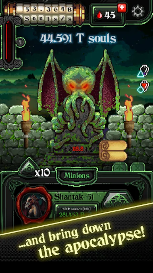 Come to the ancient temple of Cthulhu at the dark shore under the ever-setting sun... Unleash the minions from the Lovecraft universe and become increasingly powerful with the souls they collect in your name. You will master your own madness, meet the Outer Gods and become more godlike with each passing timeline.