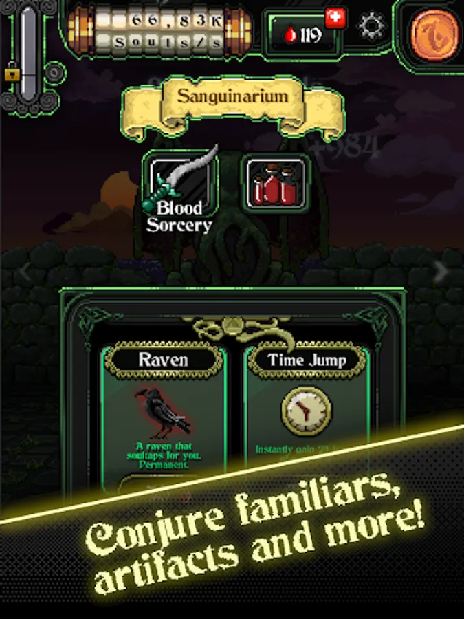 On your altar, there are two magical objects: the skull of a sinner and a goblet of blood. The skull is the key to your minions and the goblet of blood the key to the various powers you can have. The powers include those such as the unique Soulflame torches that help your soul collection (keep them alight by tapping!), some that empower your minions, or some that even unlock new stages of madness. Be careful, manage your level of delirium, lest you go fully insane!