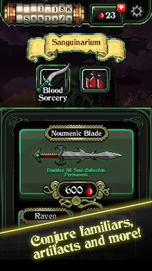 As you progress within the game you will unlock different Offerings that will reward you with Elder Blood. With Elder Blood you can acquire artefacts and engage in Blood Sorcery which will help you in unique ways. Upon collecting a certain number of souls, you will be asked to draw magical sigils that empower you.