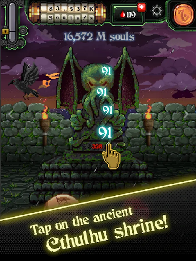 The setting, the hand-crafted pixel art visuals, the carefully chosen sound design - they will mesmerize you. If you want to enjoy an idle tapping game that sometimes sends chills down your spine, then this is your game.