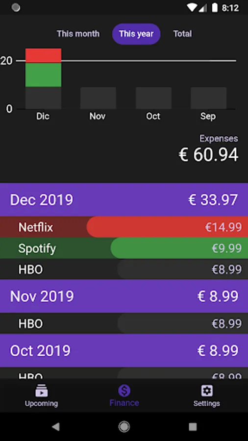 Check the monthly expense of all your subscriptions, the annual expense you carry on them or everything you have paid from the beginning.