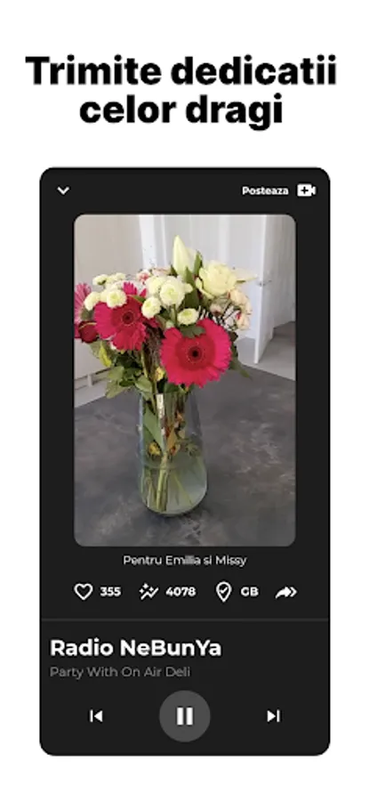 Wherever you are in the world, use our app to listen to your favorite manele stations. The application offers you the possibility to send dedications with photos directly in the application.