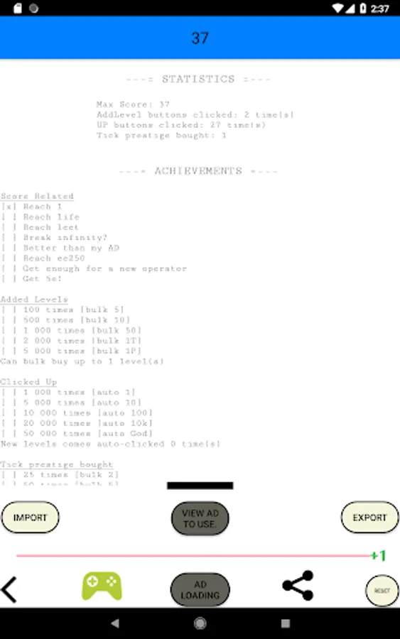 This is a game where sometimes you watch number grow, other times you tap like crazy to get big stats.