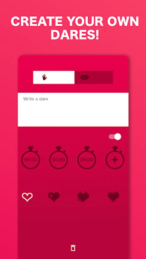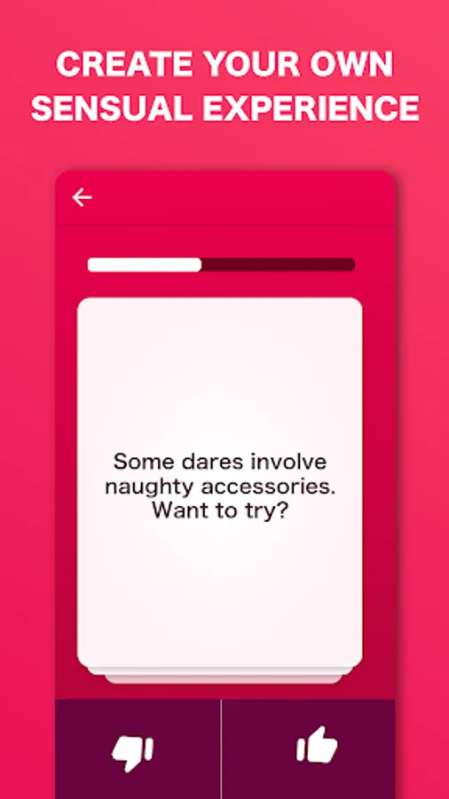 The truths and dares are organized into 4 levels of difficulty. Are you looking to spark up some romance with your partner? Check out our beginning levels! If you’re feeling like something on the dirtier side, unlock the others that follow. Find the perfect balance by creating your own dares!