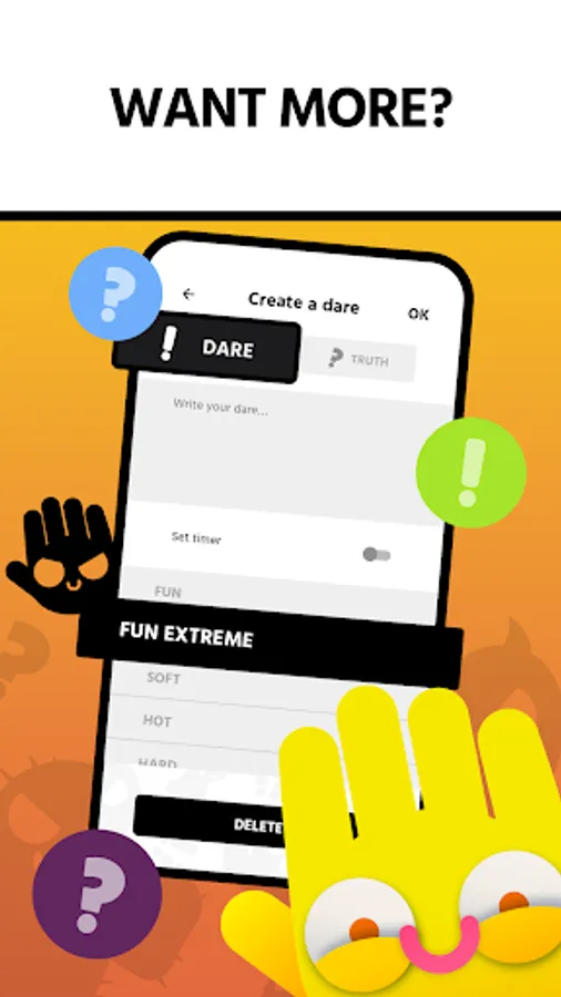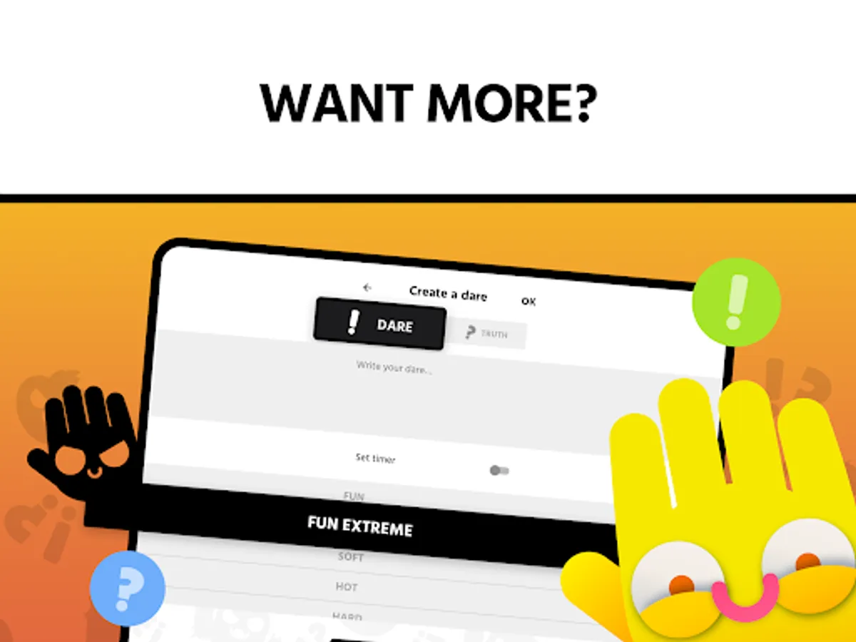 Want to take things a step further? Challenge your friends with hot dares and discover their craziest secrets with racy truths!
