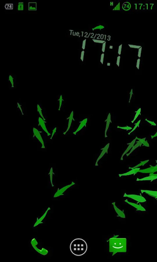 Color of Fish, clock, speed, amount and background are configurable in settings