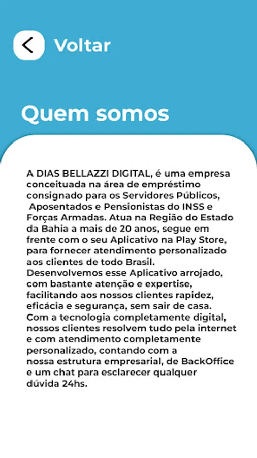 An application to quickly and effectively resolve your payroll loan, direct debit, FGTS advance and energy bill debit.