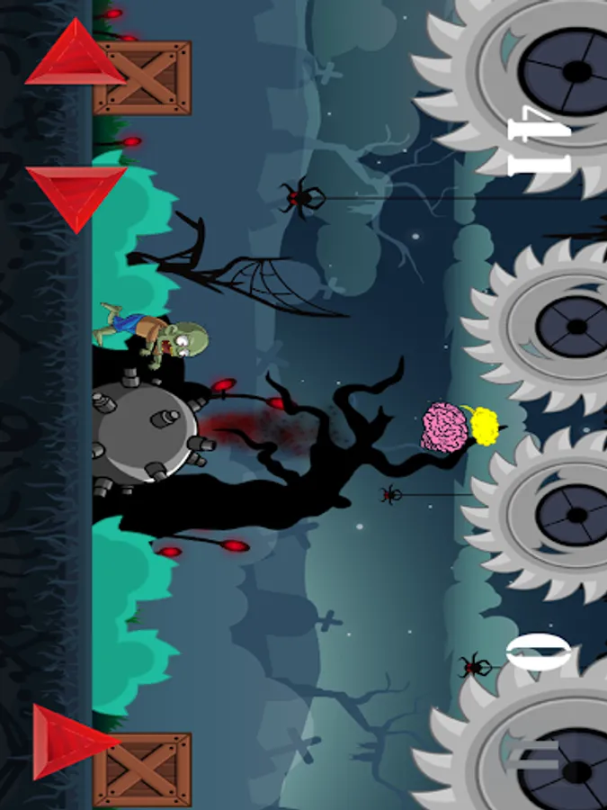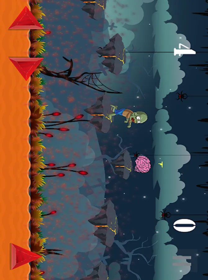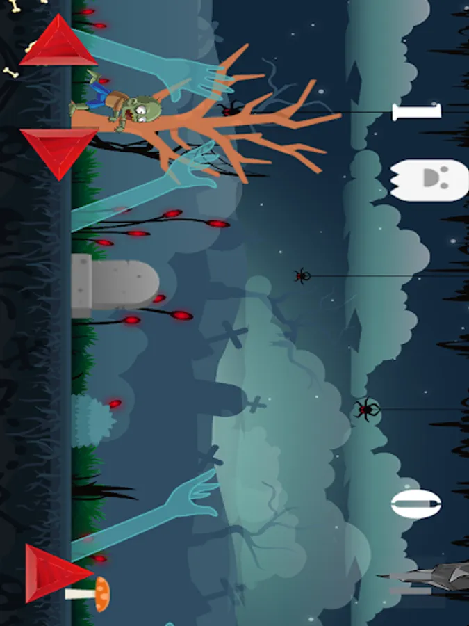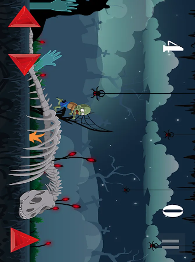 In the gameplay, tap the arrows on the bottom to move your zombie right, left or to jump.
