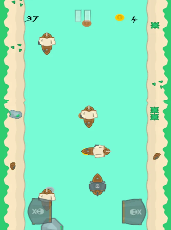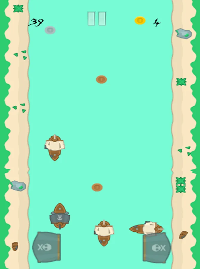 Avoid enemy ships sailing towards you and deadly obstacles waiting for you. Collect many coins from leftover treasures to expand your fleet and upgrade your ship and crew for faster and smoother sailing.