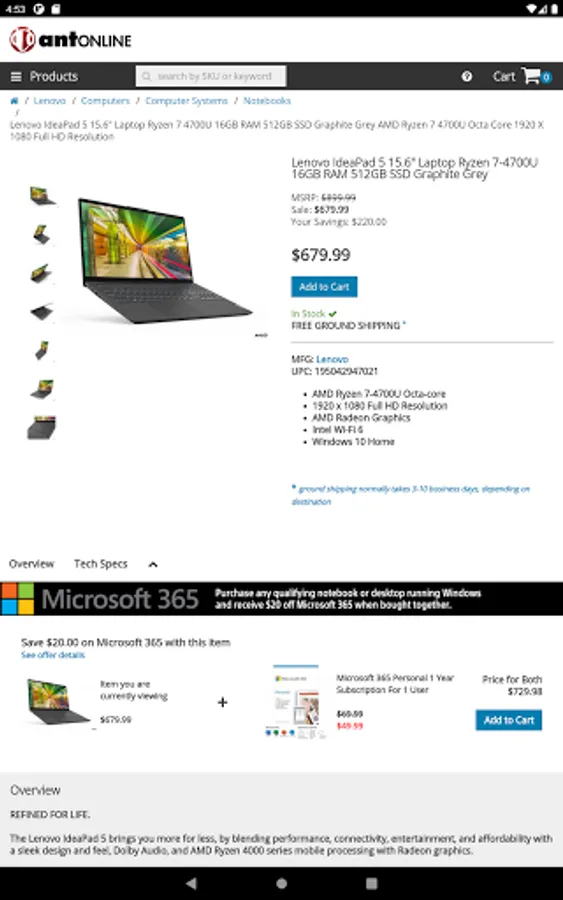 The Antonline Android Mobile Apps allows you to shop our amazing deals on gaming and computer products on the go from any of your Android mobile devices. You can view products with high-resolution photos, see key details and review specifications with our intuitive interface. Our mobile app makes it easy to browse and search for products, check product availability, set up customer accounts and purchase effortlessly with your favorite online method.