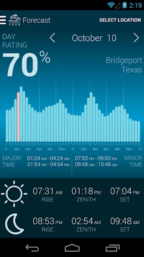 Make your fishing and hunting extremely effective with forecast from Fishing & Hunting Solunar Time!