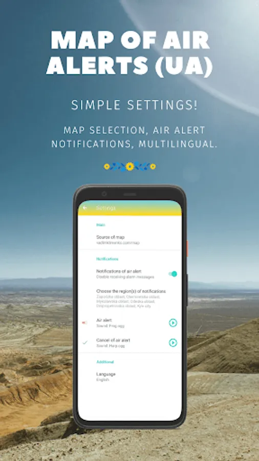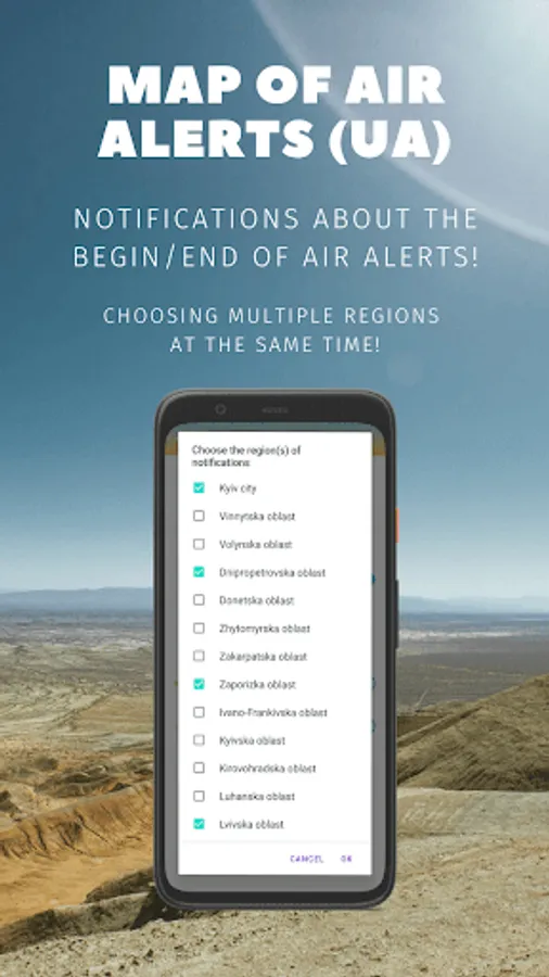 Receive notifications about the begin/end of air-raid alerts in several regions at the same time.
