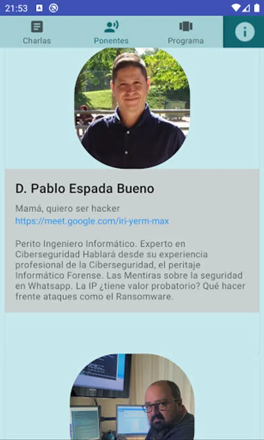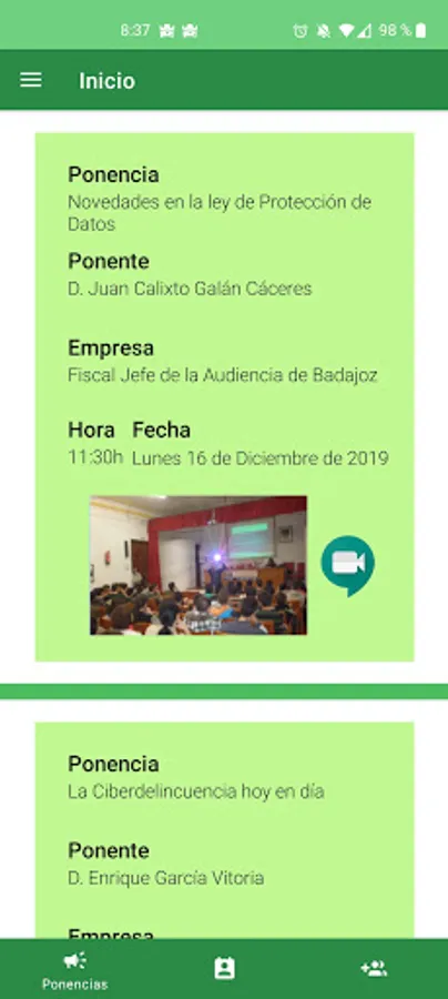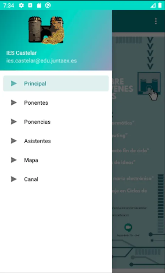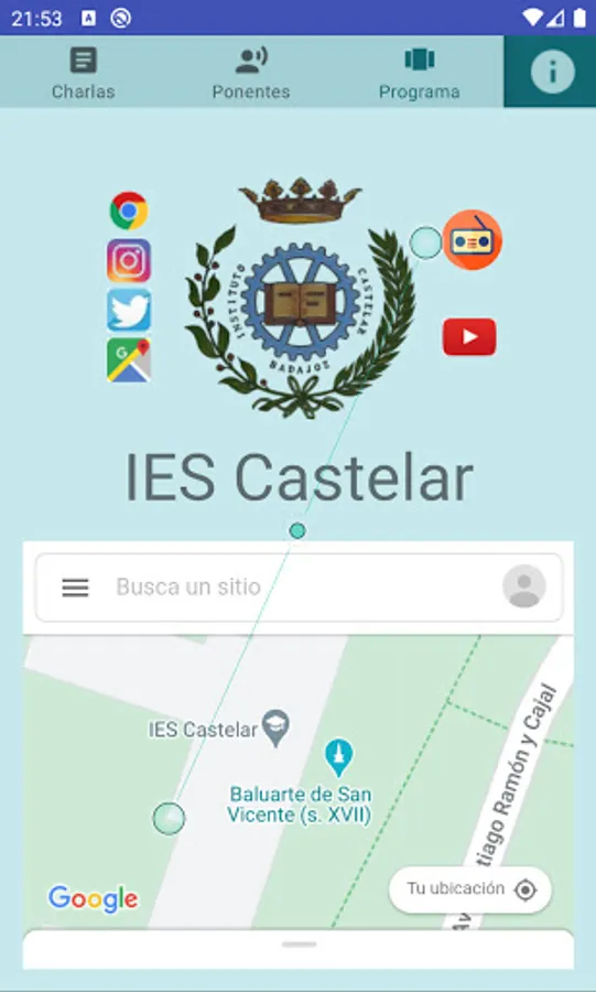 It allows access to the rooms where the conferences are broadcast, indicating the active room at all times, as well as access to all communication spaces of the IES Castelar IT Department.