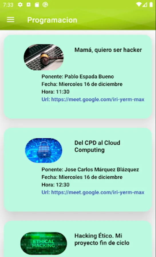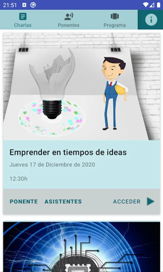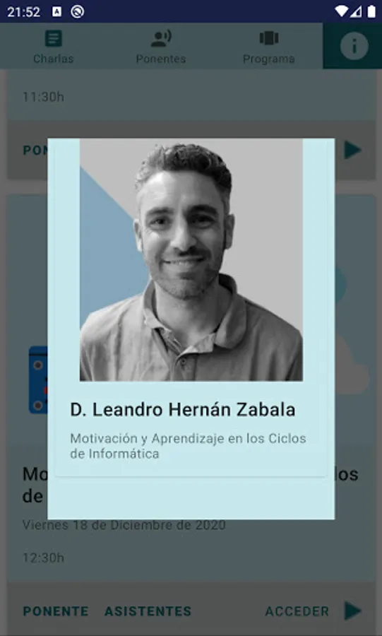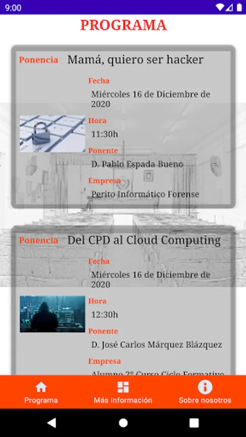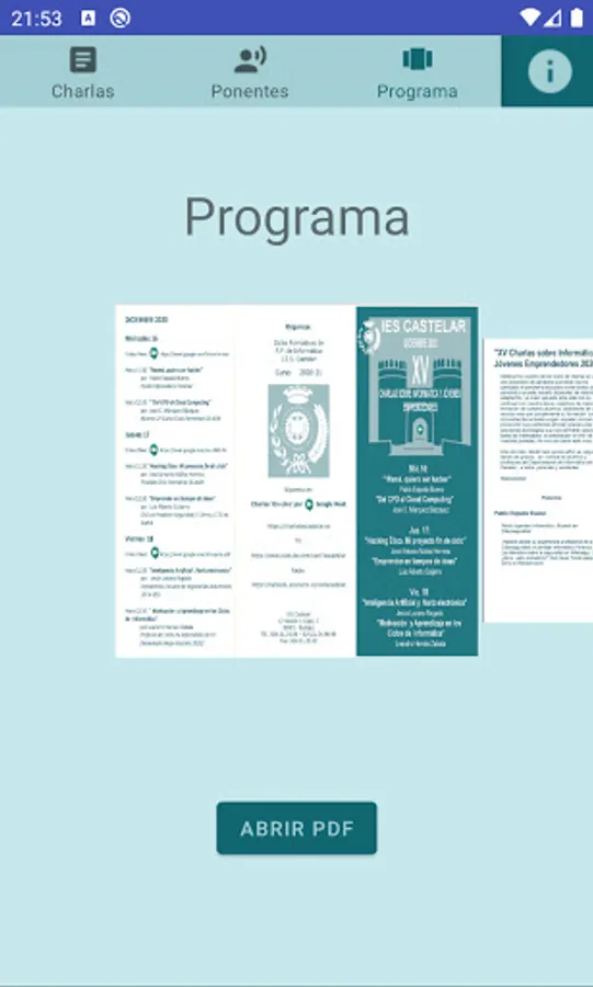 Monitoring application of the XV Talks on Computer Science and Young Entrepreneurs of the IES Castelar. December 2020.