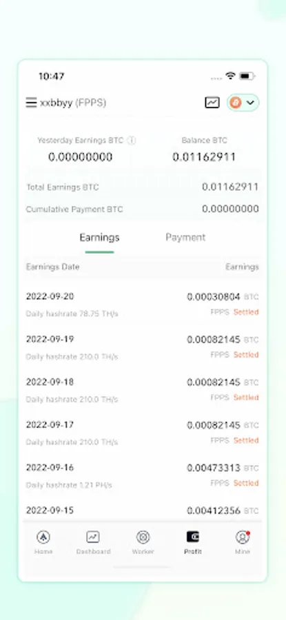 2. Transparent Earnings: Support PPS, PPS+, PPLNS and other earnings modes. Automatic settlement and payout each day, Transparent earnings, Real-time mining data update.