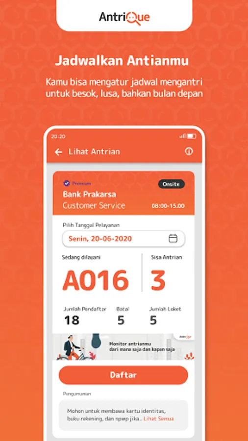 There are so many advantages of the AntriQue application that you can get. Can monitor queue calls in realtime and online from anywhere and at any time, prevent visitors from getting caught in a crowd at the location, and only just need to install one application for various services.