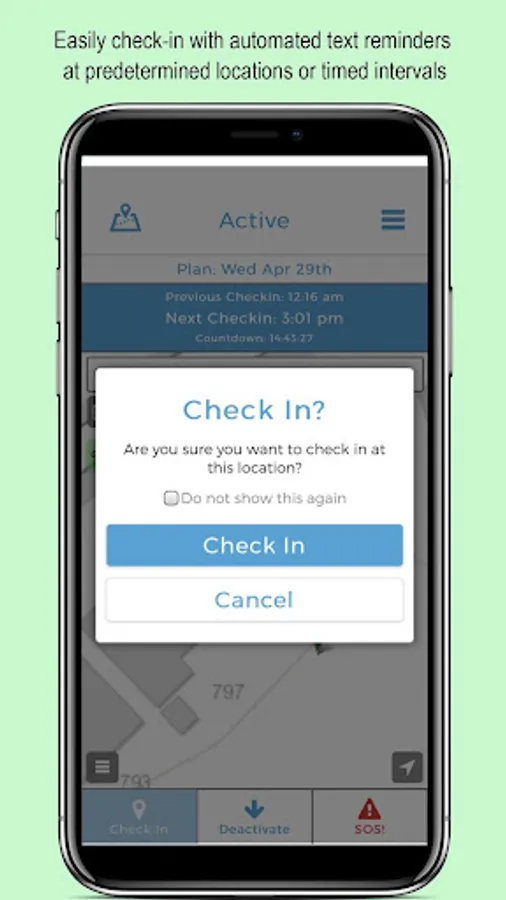 - Easily check-in with automated text reminders at predetermined locations or timed intervals