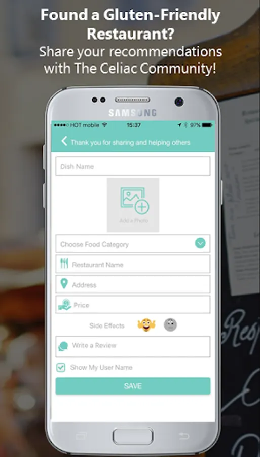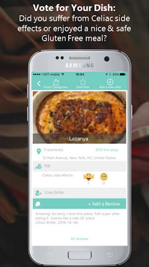 - Upload your own recommendations or rejections after eating a gluten free meal