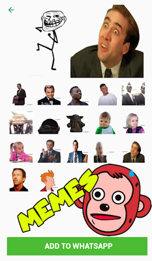 This app includes the most completed set of animated memes stickers for WhatsApp.