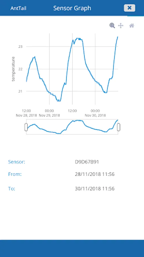 The AntTail app provides AntTail customers an extra option to read out AntTail temperature sensors with their mobile device if no AntTail gateway is available. Temperature readings and graphs can be seen within the AntTail app. The app login is equals to the AntTail back-office account of the user. The temperature data is stored directly into the AntCloud and therefore the AntTail app operates only with a stable and active internet connection.