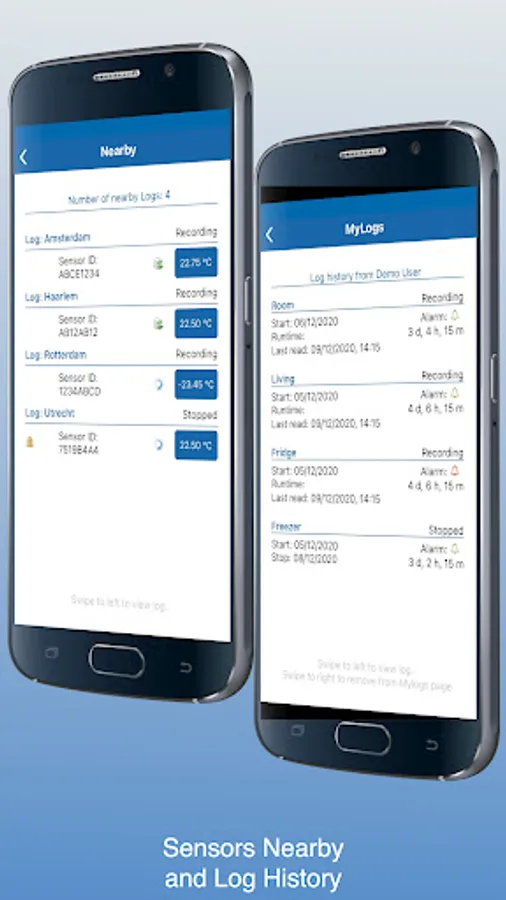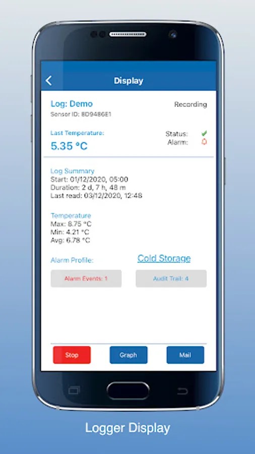 AntTail temperature sensors are read out and controlled via the display in the AntLogger app. AntTail sensors always measure temperature and store the data in their internal memory with a five-minute interval and use a Bluetooth protocol to synchronise measurements. While a user checks the temperature and alarm status on the AntLogger app display, automatically, the app reads the sensor data wirelessly and sends all encrypted sensor data directly to the AntCloud. This ensures that all data is stored in the AntCloud when a AntLogger app is used to inspect and configure a temperature logger and that an audit trail is available. For the app user the advantage is that he/she does not have to take manual actions to upload the data or temperature report.
