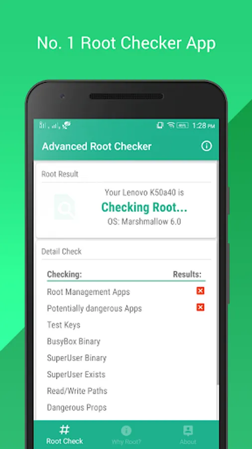 Advanced Root Checker helps you to check whether the device is rooted or not. This App will run a detailed check in the device to verify the root.