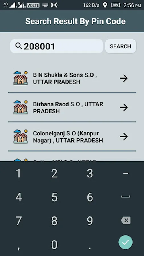- Details show the type of post office (Delivery Office or Non Delivery office)