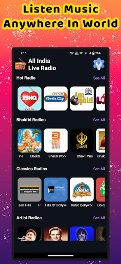 Navigating through the vast collection of radio channels is a breeze with our user-friendly interface. Seamlessly switch between stations, explore new genres, and revel in the abundance of Indian content.