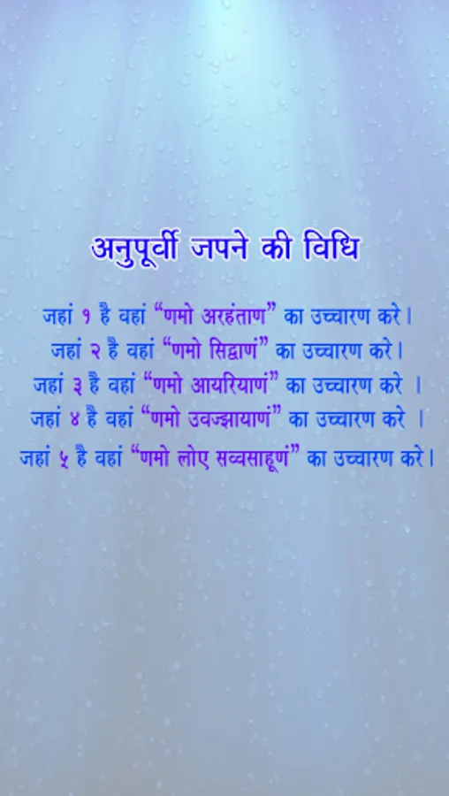 Anupurvi, is a meditation technique, conceptualized by Jains, which uses the most effective mantra in Jainism, the Navkar Mantra. Navkar Mantra does not refer to any particular God or saint. It is a prayer done towards the good qualities of the Gods, Teachers and the Saints. The devotee who recites Navkar Mantra does not ask for any favours or benefits from the Gods. This mantra simply serves as a gesture of deep respect towards beings, believed to have spiritually ascended, which also subtly reminds the devotee of his/her own ultimate goal of nirvana or moksha or salvation.
