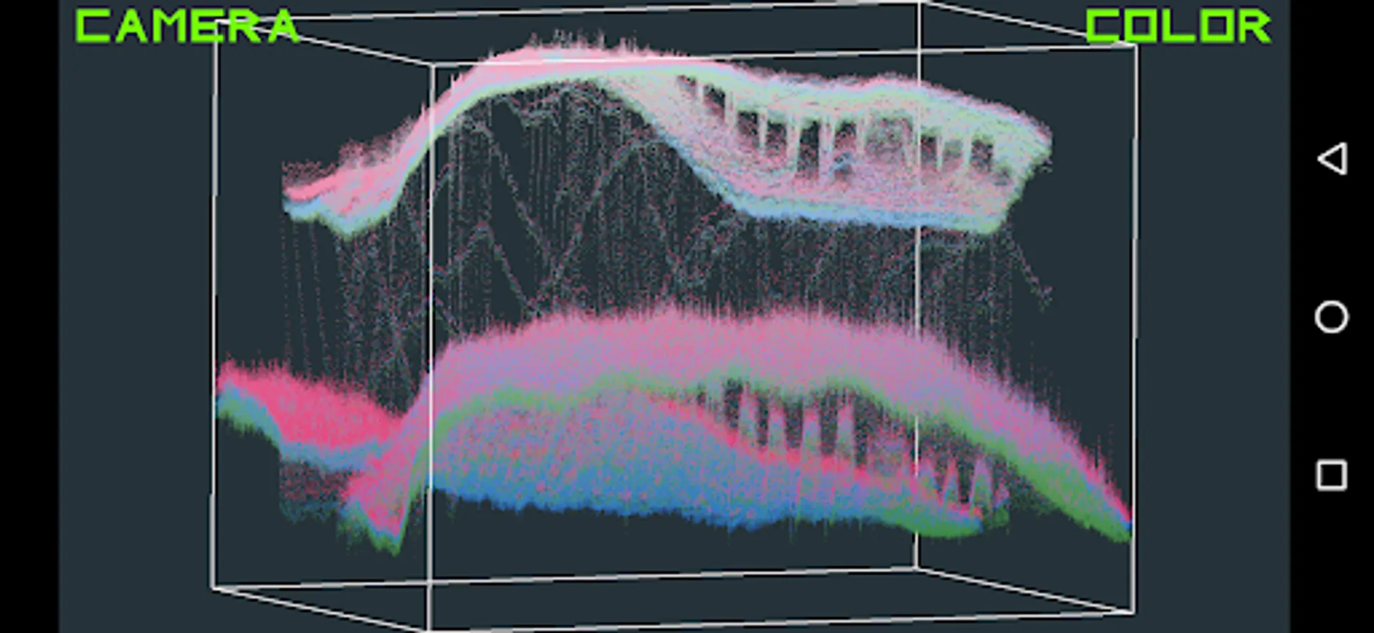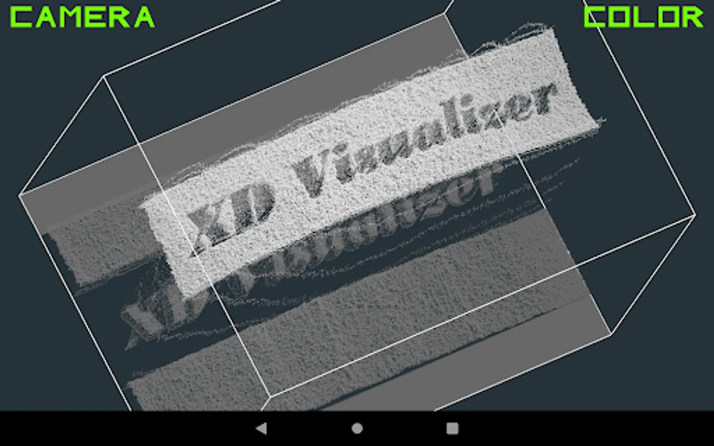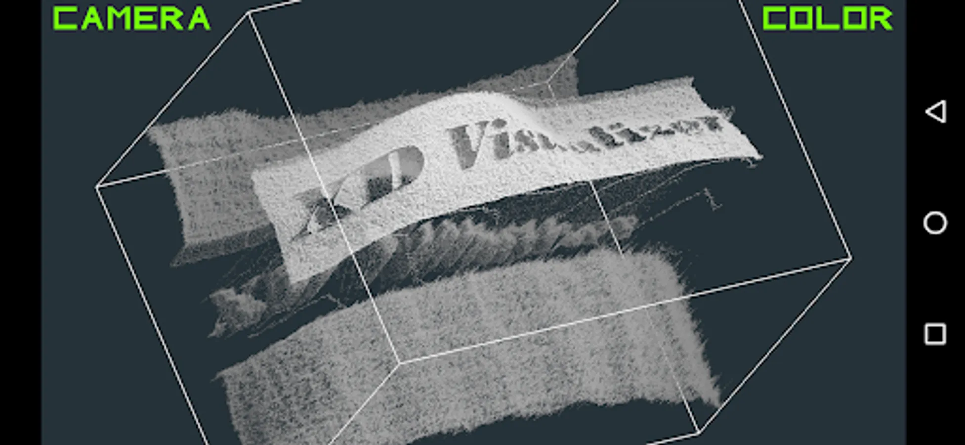 Extra Dimension Visualizer represents an image, taken with Your device's camera, as a visualization matrix of pixels, adding a third dimension to it. This added extra dimension represents the brightness value of a given pixel as a distance from the top plane of the visualization matrix, placing the brighter pixels closer and the darker pixels further from the top. You can choose the color component of the image to be visualized or choose grayscale mode, in which the mean brightness of all color components is displayed.