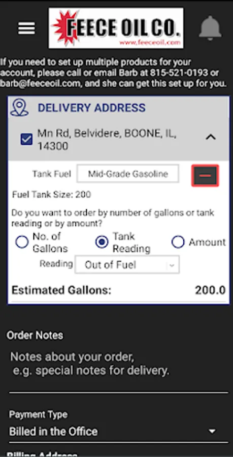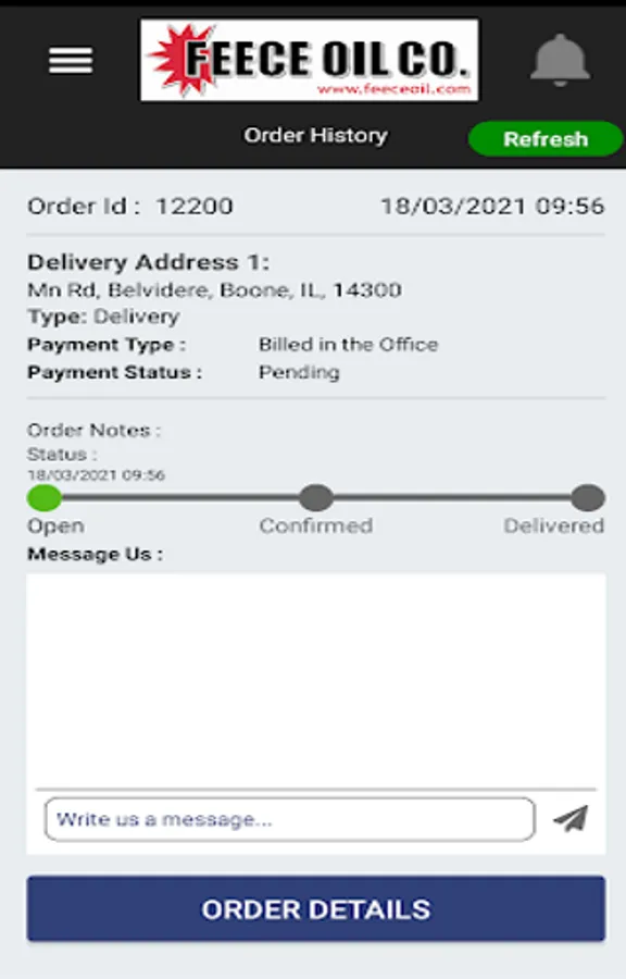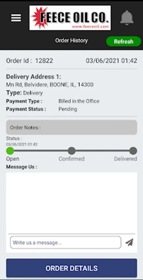 The Feece Oil app allows you to order fuel real-time from your mobile device.