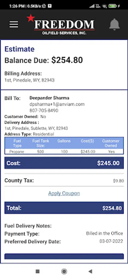 The Freedom Oilfield Services app is perfect for anyone who needs a fast and simple way to buy Propane,