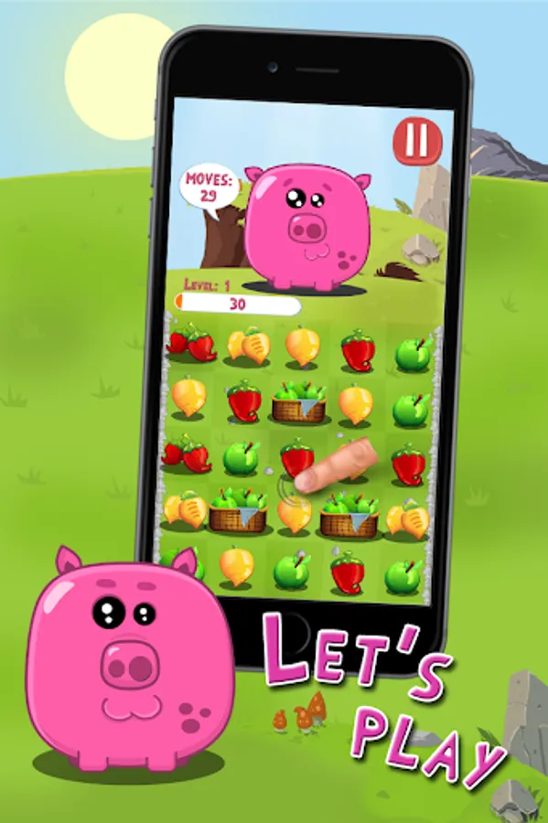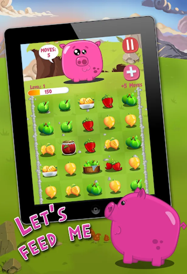The object of the game is to match vegetables on the board to feed the cute hungry pig.