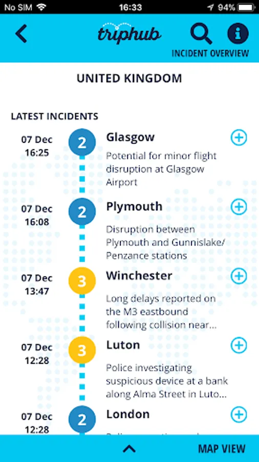 Each country and city is assigned a risk level, so that travellers can quickly understand the risk profile of their destination. In addition, users can select to receive push notification alerts about developing threats or live incidents occurring in their immediate locality or other locations of interest, and visualise them instantly using the map view feature.