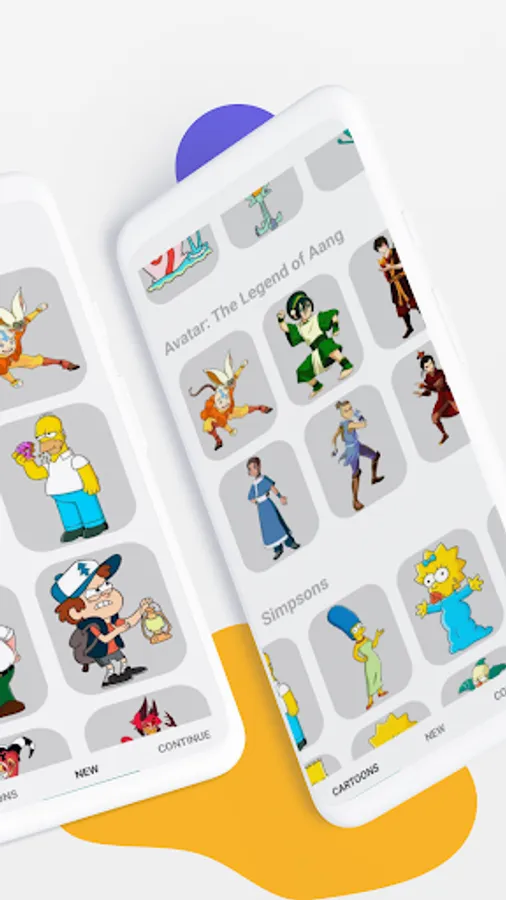 Characters from bright multi-part animations: "Gravity Falls”, "Avatar: The Legend of Aang”, "May Little Pony";