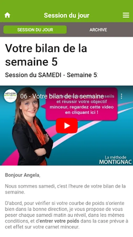 The slimming coaching offered in this application is presented and led by Sybille Montignac, Michel's daughter, herself a graduate in dietetics and an expert in nutrition.