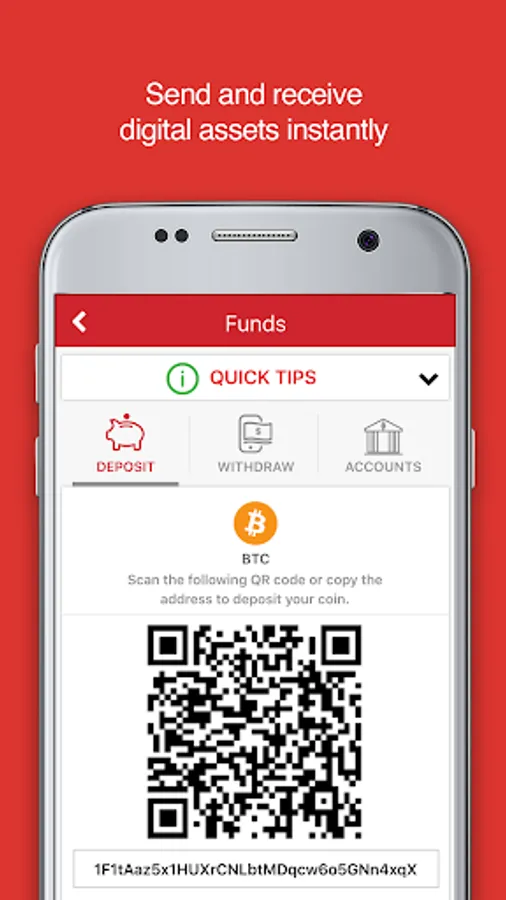 - Realtime crypto exchange rates for all supported currencies, view funds instantly