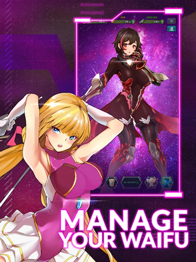 Hire new waifu agents in kawaii anime games. Develop your spaceship, explore new planets, and build new farms to earn even more impact in idle mode. Your anime goddesses are waiting for you in Idle Space Farmer: Tycoon Games!