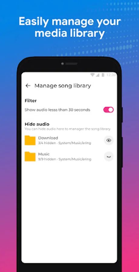 AnyPlay has powerful file organization capabilities. It will automatically search for audio and video in your phone and integrate them. And its file hiding function enables you to filter the files you don't want to show in AnyPlay, helping you better manage your media library!