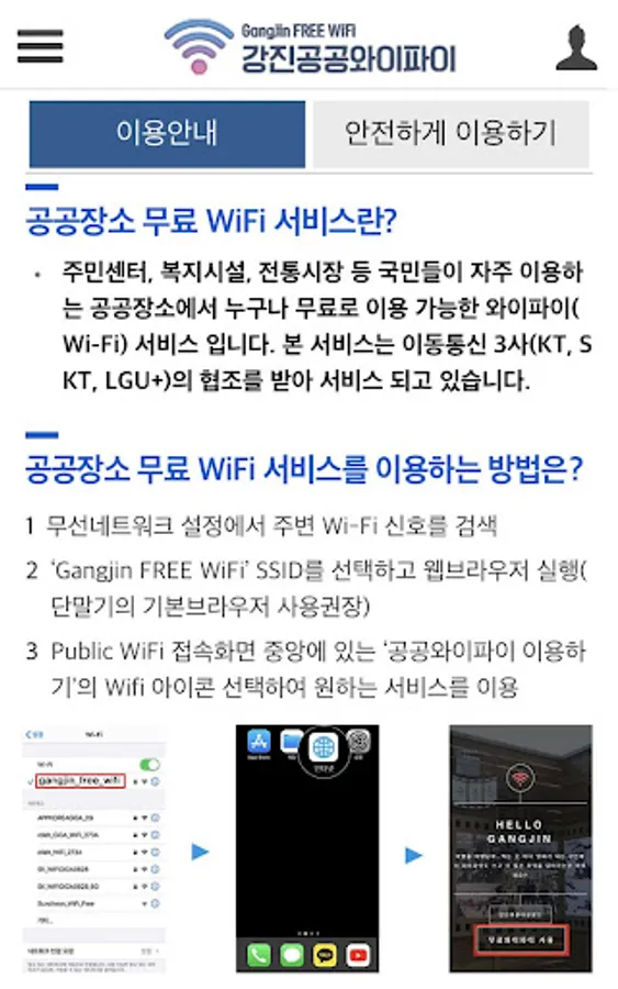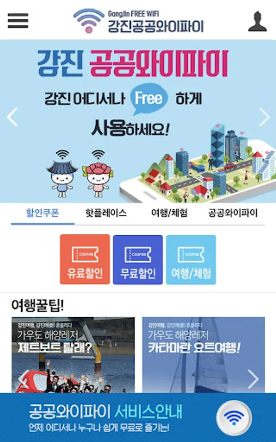 Gangjinpumae is an app that helps you use Wi-Fi for free and convenient in Gangjin.