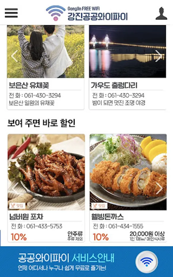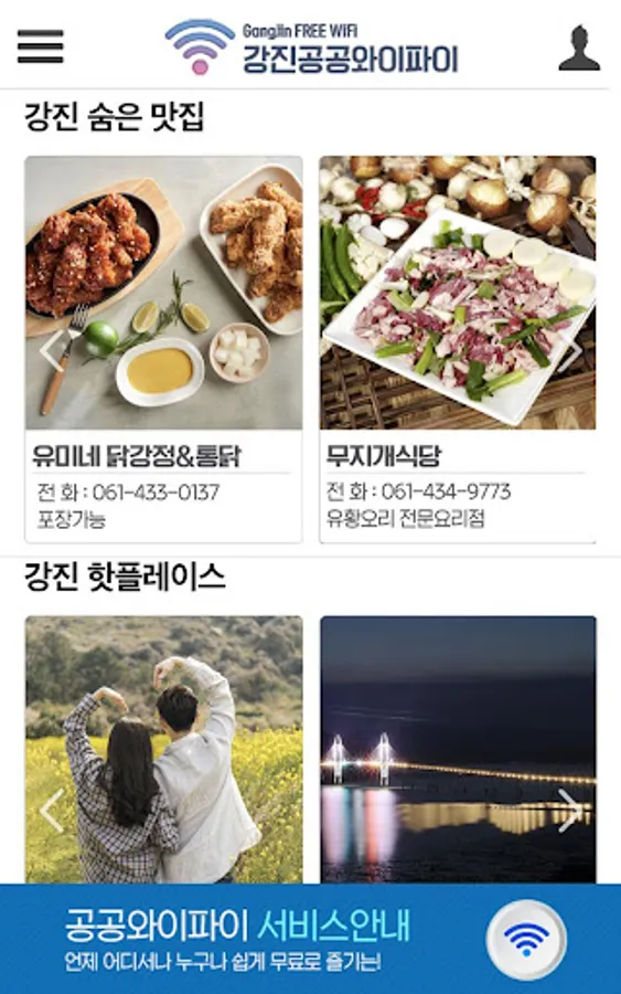 You can also grab Wi-Fi in Gangjin at once and view Gangjin tourism information at once.