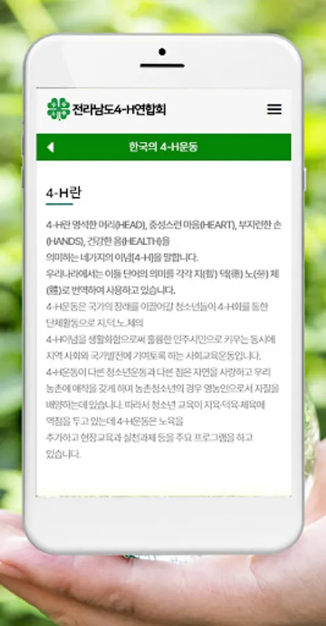 We will create a Jeonnam 4-H Association where tradition and future coexist through the 4-H movement that cooperates with regional 4-H headquarters in cities, counties and provinces.