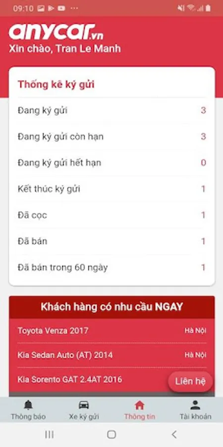 Anycar deposit agent at Anycar will use the Anycar - Dealer application to view the car's deposit status, view the car's check car. In addition, the extension of deposit will be made right on the app. Any decision to increase or decrease the price of a car can be made on the app without a car dealer Anycar to sign the cumbersome procedures.